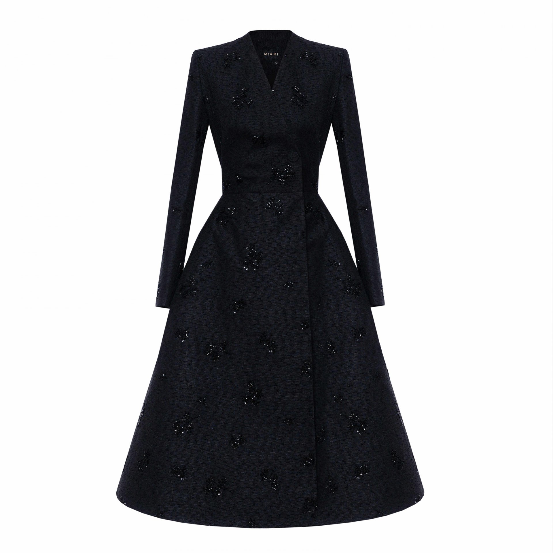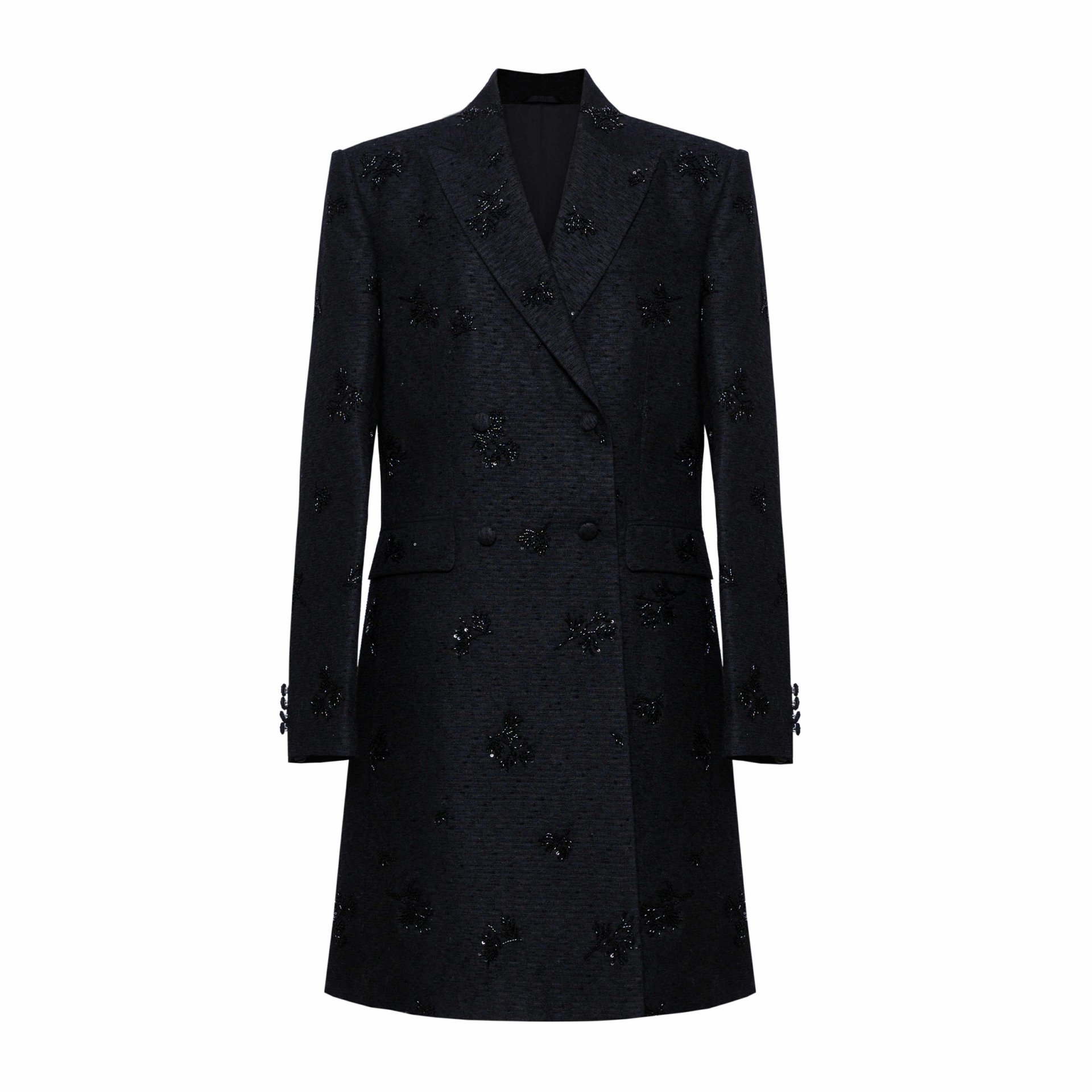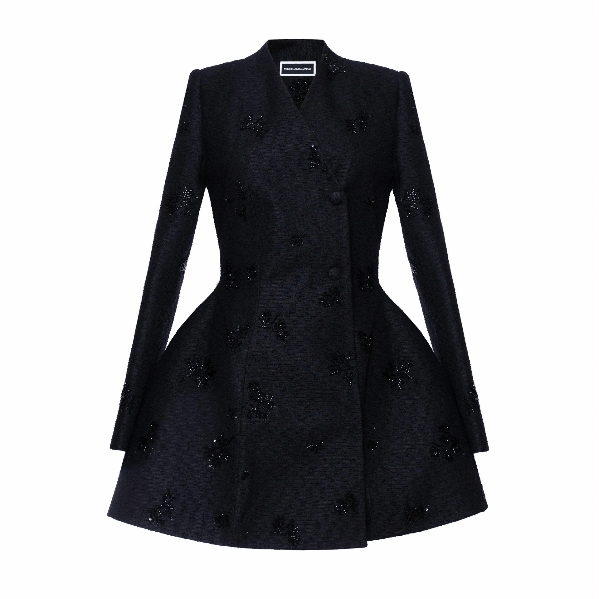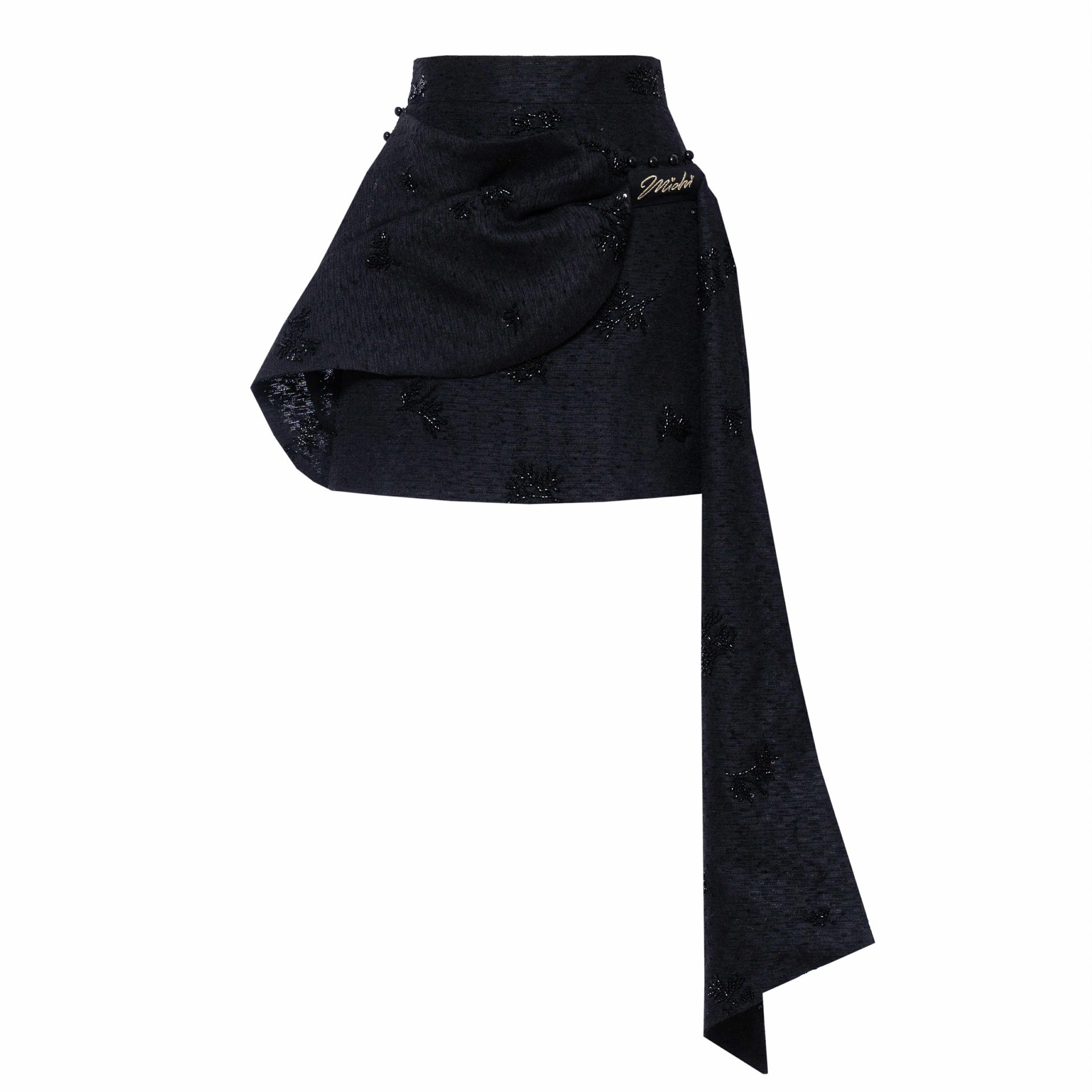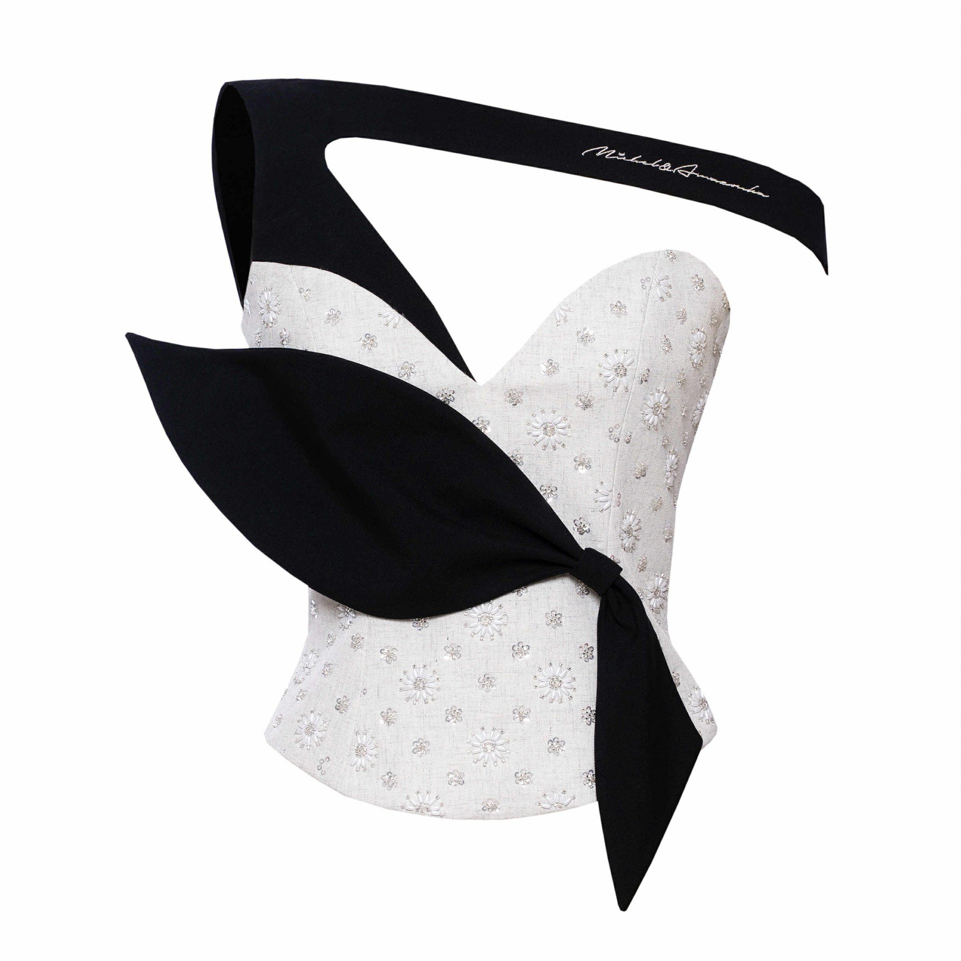 Хар өнгийн суурь дээр хатгаж урласан цагаан цэцэгсийн хээ нь байгалийн гоо үзэсгэлэнг орчин үеийн хэлээр өгүүлнэ.